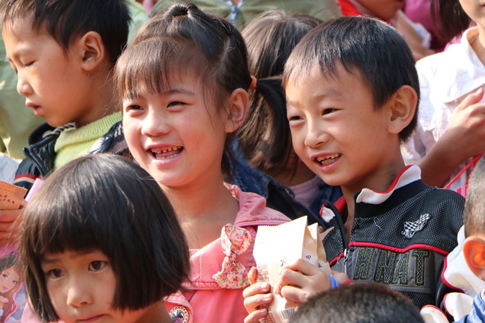 當(dāng)我們把月餅送到孩子們手中時,有的孩子忍不住現(xiàn)場品嘗起美味的月餅來,有的孩子則拿著月餅左瞧瞧、右看看,舍不得吃掉。“小朋友,你怎么不吃呢?”“我要給我妹妹帶回去,媽媽生病了,爸爸在外打工掙錢,我們家沒買過這種粑粑吃?!毙∧泻⒚鎸ξ覀円稽c(diǎn)也不害羞,而是一本正經(jīng)地講述著自己不吃月餅的“小秘密”。