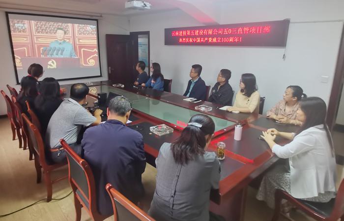 7月1日是偉大的中國共產(chǎn)黨成立100周年之日,上午8時,五〇三直管項目部黨支部在直管部二線會議室、晉寧區(qū)安企居住區(qū)建設項目會議室,組織干部職工30人集中觀看慶祝中國共產(chǎn)黨成立100周年大會直播。