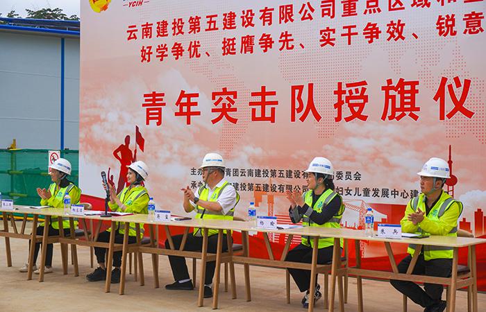 9月27日上午,公司在云南婦女兒童發(fā)展中心建設(shè)項目舉行重點區(qū)域和重點項目“好學(xué)爭優(yōu)、挺膺爭先、實干爭效、銳意爭新”青年突擊隊授旗儀式,集團團委書記、本部工會主席楊瑜,公司黨委書記、副董事長蔣璽出席授旗儀式并講話。