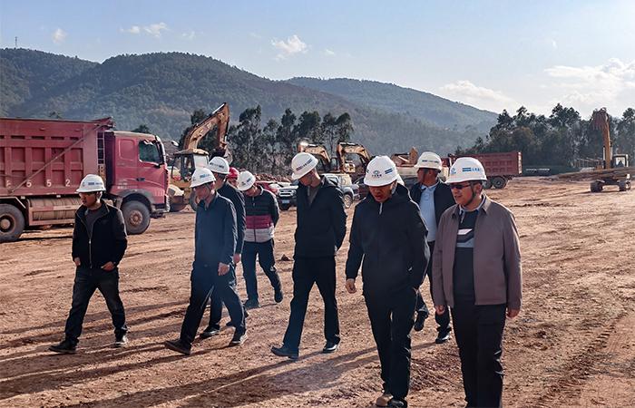 楊永一行實(shí)地查看項(xiàng)目規(guī)劃布局,聽取項(xiàng)目部對(duì)現(xiàn)場(chǎng)土方的開挖、運(yùn)送及碎石等工作的安排,并對(duì)接下來的工作開展做出要求。