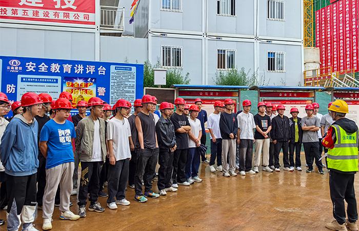 為保障此次校企合作活動安全、高效進行,項目部提前周密部署,制定了詳細的參觀流程和安全預案。進入現(xiàn)場前,項目安全員對全體師生開展嚴格的入場安全技術交底,強調(diào)現(xiàn)場注意事項,確保師生安全。