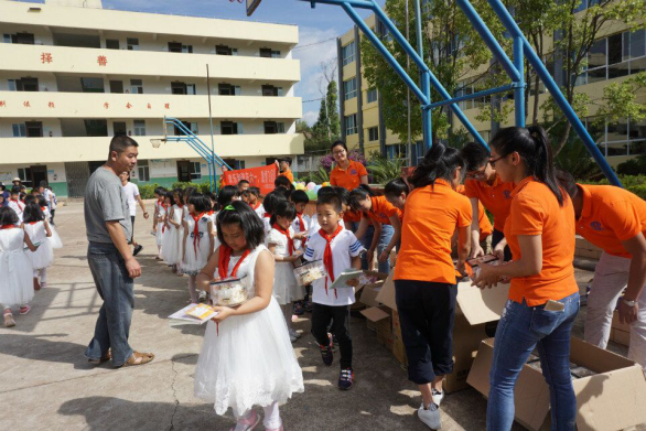 給小朋友們發(fā)蛋糕及學習用品