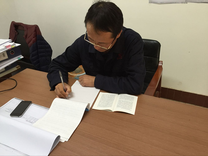 項(xiàng)目部黨員抄寫(xiě)《黨章》
