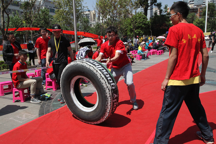 4月30日,應(yīng)昆明市總工會的邀請,公司工會聯(lián)合團委組織公司34名青年職工組成11支隊伍參加2016年昆明市職工全民健身運動會。運動會集趣味性與競技性于一體,設(shè)置有跳繩、俯臥撐、翻滾輪胎、恒定阻力動感單車快騎、負重下蹲、仰臥起坐、杠鈴?fù)εe、定高甩繩8個項目,需由3人組成團隊接力完成或由1人單獨挑戰(zhàn)完成。公司參賽隊員統(tǒng)一穿著印有“云南五建”標示的隊服參賽,經(jīng)過激烈的角逐之后,公司贏得了1個團隊一等獎、3個團隊二等獎、7個團隊三等獎以及1個個人二等獎和1個個人三等獎的好成績。