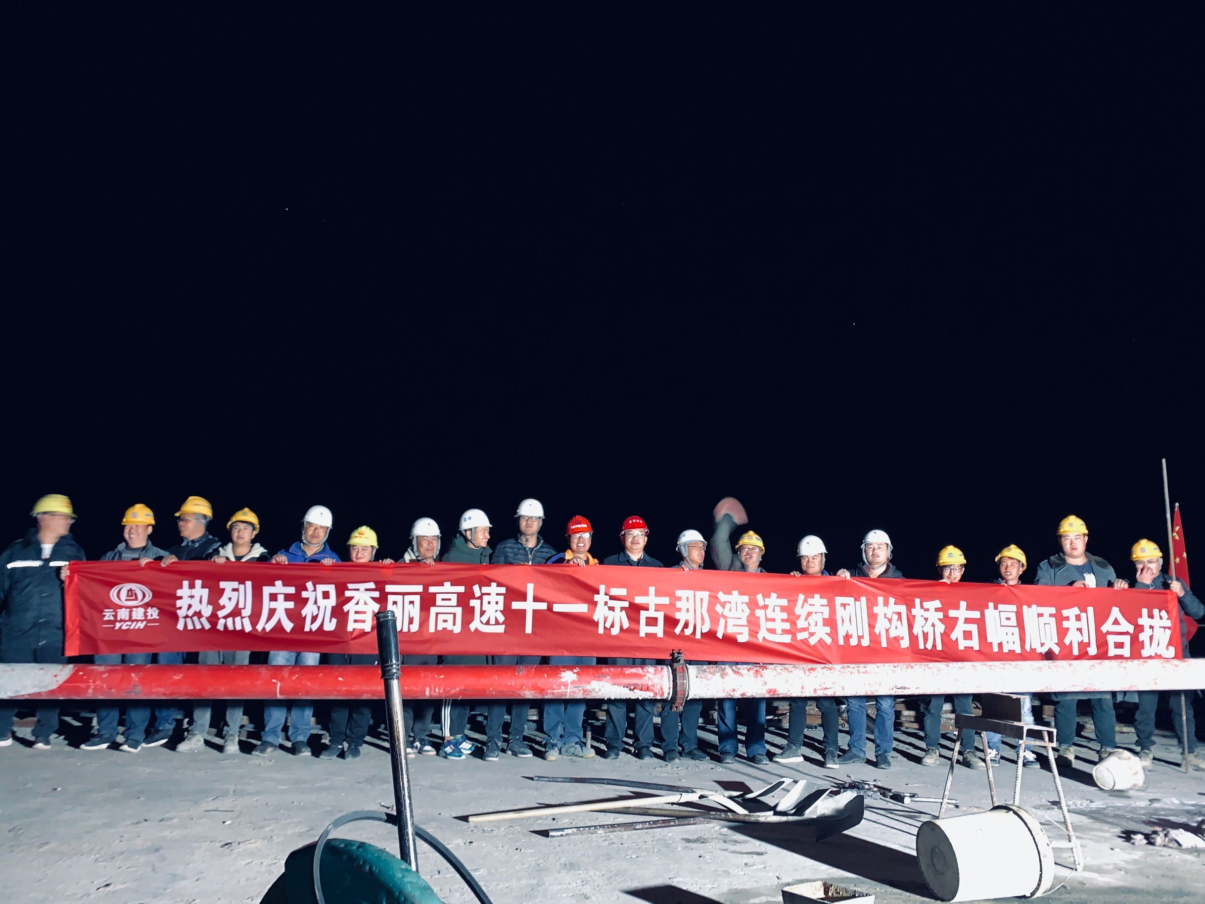 11月30日凌晨三點(diǎn)的寒風(fēng)中,路橋一部負(fù)責(zé)施工的香麗高速十一標(biāo)項(xiàng)目古那灣連續(xù)剛構(gòu)橋右幅中跨澆筑完成,順利合龍。該中跨合龍段澆筑歷時(shí)5個(gè)小時(shí),共澆筑C55微膨脹混凝土52立方米。