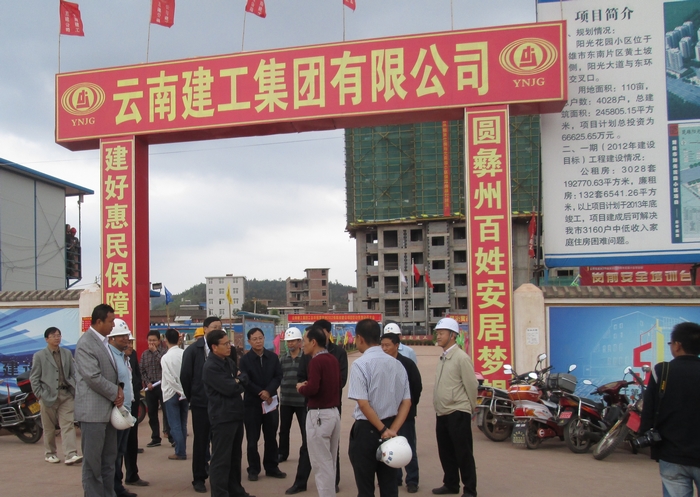 5月3日,云南省副省長(zhǎng)丁紹祥、楚雄州州委、楚雄市市委等相關(guān)領(lǐng)導(dǎo)到公司楚雄市2012年公共租賃住房-陽(yáng)光花園小區(qū)工地視察。