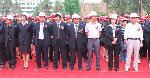 省建設(shè)廳副廳長陳錫誠,省國資委助理巡視員魏民,省市有關(guān)部門領(lǐng)導(dǎo),集團(tuán)總公司黨政領(lǐng)導(dǎo)納杰、寧升功、謝其華、劉勇、后永寧、邱錄軍出席開工儀式??偣靖鞑渴邑?fù)責(zé)人和所屬各單位黨政工領(lǐng)導(dǎo)前往祝賀。省國資委助理巡視員魏民、云南建工集團(tuán)董事長、黨委書記納杰和有關(guān)領(lǐng)導(dǎo)為工程開工儀式剪彩??偣究偨?jīng)理,省房地產(chǎn)公司總經(jīng)理李虎春,五公司董事長、黨委書記楊福和在儀式上講話,表示一定要以一流的質(zhì)量、一流的管理,開發(fā)建設(shè)好景秀西苑經(jīng)濟(jì)適用房項(xiàng)目,為集團(tuán)廣大職工解決好住房困難問題。