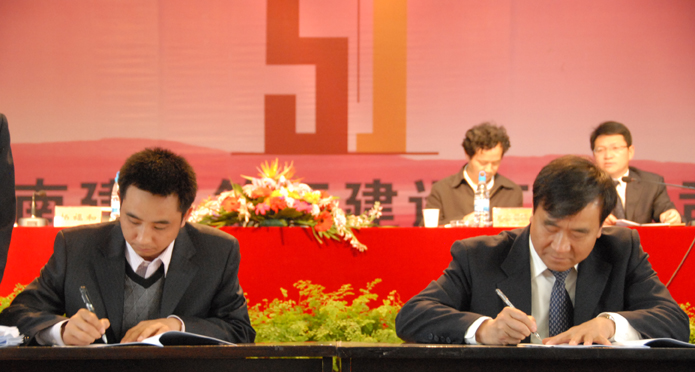 楊福和與各單位(負責人)黨支部書記在會上簽訂2011年黨風廉政建設責任書。