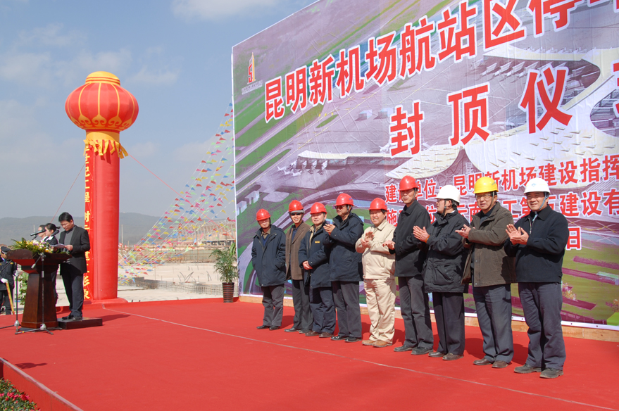 集團(tuán)新機(jī)場指揮部領(lǐng)導(dǎo)、五建設(shè)有限公司領(lǐng)導(dǎo)成員及各有關(guān)單位各部門主要領(lǐng)導(dǎo)、昆明新機(jī)場項(xiàng)目部成員和參見員工等參加了封頂儀式。