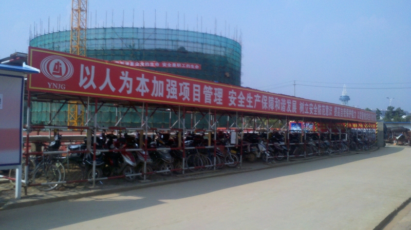 按照集團和公司標準化實施細則的要求,項目部進場前做了充分的準備工作,提前設計了臨時設施總平面規(guī)劃圖,在避開塔吊覆蓋范圍確保工作人員安全的提前下,劃分生活區(qū)和辦公區(qū),并對兩區(qū)域進行了混凝土硬化。辦公區(qū)活動房有兩層,總面積約為320平方米,宿舍約200多平方米,配備了太陽能浴室?,F(xiàn)場還設置了近100平方米的停車場和200多平方米的吸煙區(qū)、茶水區(qū),其中停車場和單車棚采用植草磚鋪地,并設了照明和30余個插線板方便電單車充電。齊全的配套設施,為項目部創(chuàng)造了良好的工作、生活環(huán)境,解決了后顧之憂,讓大家全力以赴投入工程建設中去。