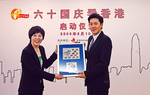 6月10日,為慶祝新中國60周年華誕,香港旅游發(fā)展局與中國青年報(bào)社聯(lián)合舉辦的“六十國慶看香港”系列活動正式啟動。香港特別行政區(qū)政府駐北京辦事處副主任陳選堯、中國青年報(bào)總編輯陳小川、香港旅發(fā)局中國內(nèi)地總監(jiān)葉貞德和著名歌唱演員蔡國慶(從左至右)一同為活動揭幕。