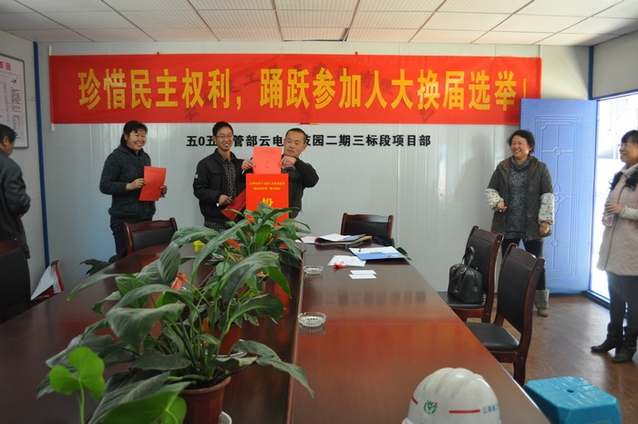 技術(shù)支持: 方森科技 2012年12月26日是五華區(qū)人大代表的選舉日,五〇五直管部作為眠山社區(qū)第一聯(lián)合選區(qū)第七小組,在選舉當(dāng)日設(shè)置了流動(dòng)票箱,分別在直管部辦公室、云電科技園項(xiàng)目部、嵩明錦繡蘭苑廉租房項(xiàng)目部進(jìn)行了選舉。