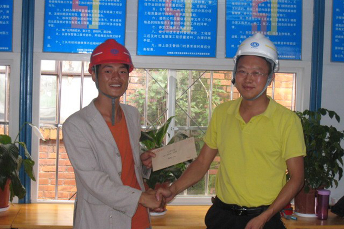 6月25日,第二安裝直管項目部領導楊忠明、徐紅梅、張興祥到工地參加文化空間現(xiàn)場管理本月綜合大檢查。檢查過程中,項目部管理人員和操作班組共同參與,通過檢查照片資料、實地查看,綜合評分,王宗能、李維彪、陳云三個班組的評分均達到優(yōu)良標準,直管部領導給予班組肯定和認可,并給他們現(xiàn)場頒發(fā)獎金。勞務班組對項目部的管理制度非常認同,表示會再接再勵干好工作。