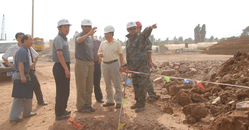 公司副總經(jīng)理兼第三直管部經(jīng)理段培勇介紹了工程施工組織管理情況。該工程的工期十分緊張,從4月6日根據(jù)建工集團(tuán)要求緊急進(jìn)場增援施工以來,五建公司第三直管部、五建市政工程公司以及近日進(jìn)場的503直管部一直晝夜施工,連續(xù)奮戰(zhàn),沒有休過一天的節(jié)假日。工程場地非常狹窄,幾乎天天都要為尋找堆土場地費(fèi)盡心思,還要花費(fèi)大量精力協(xié)調(diào)與當(dāng)?shù)卮迕竦年P(guān)系。在整個(gè)工程施工中,不僅與集團(tuán)內(nèi)兄弟單位展開無形中的勞動競賽,而且還要與國字號的專業(yè)隊(duì)伍同臺競技。參建同志決心為公司和集團(tuán)榮譽(yù)全力一搏,以優(yōu)秀的建設(shè)業(yè)績報(bào)答上級的信任。針對施工現(xiàn)場地處低洼排水不暢、淤積泥土極其松軟的地質(zhì)條件,提出了分工合作、協(xié)同作戰(zhàn),搶在雨天到來之前全力拼搏搶進(jìn)度的工作思路。