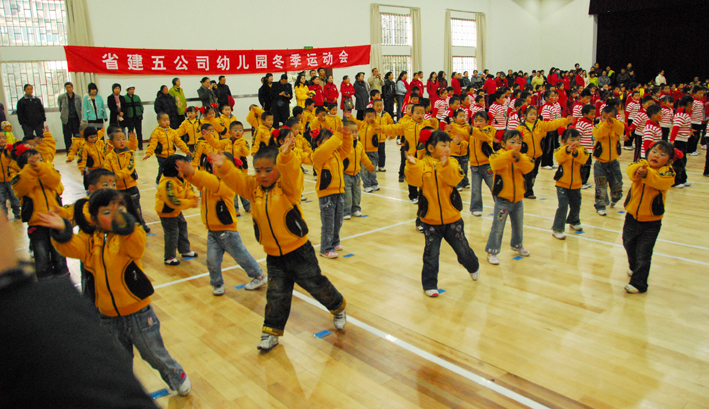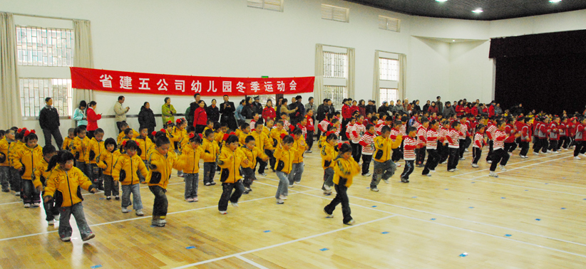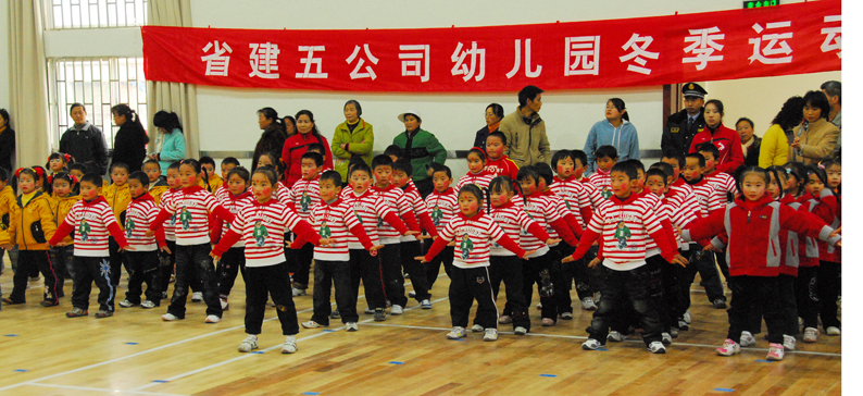 云南省暨昆明市一級幼兒園云南建工第五建設(shè)有限公司幼兒園繼2008年11月18日被昆明市教育局督導評估組專家評定為“優(yōu)級丙園”之后,元月9日又迎來了一年一度的冬季運動會暨“健康、和諧、快樂體育藝術(shù)節(jié)”,250余名幼兒和300余名家長參加了此次盛會,公司工會主席李興奎代表公司黨、政、工到會祝賀。