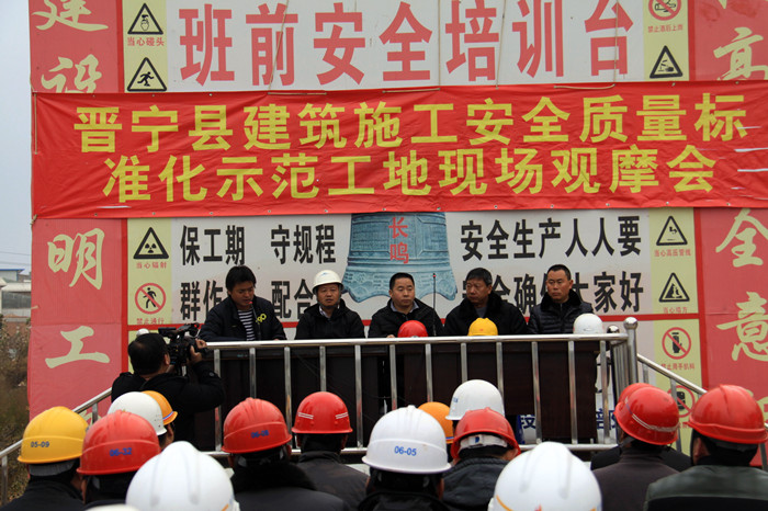 2013年1月17日上午,晉寧縣質(zhì)檢站組織全縣在建項(xiàng)目的施工單位及相關(guān)部門人員到五〇三直管項(xiàng)目部施工的晉寧安企居住區(qū)(第四標(biāo)段)項(xiàng)目進(jìn)行現(xiàn)場(chǎng)觀摩。晉寧縣住建系統(tǒng)領(lǐng)導(dǎo)及建設(shè)方領(lǐng)導(dǎo)出席了此次觀摩并作了發(fā)言。