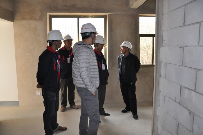 在公司總經(jīng)理助理、第三直管部經(jīng)理王文斌和項目執(zhí)行副經(jīng)理何斌陪同下,李文智先后參觀了項目部辦公室、會議室及食堂,并重點參觀了項目部的過程工序樣板房,檢查了施工現(xiàn)場及文明施工建設的情況。