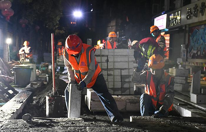 11月15日晚,翠湖西岸,倉園巷內(nèi),一片燈火通明。工人搬運(yùn)石材、拌合灰漿、鋪設(shè)地磚,來來往往,項目建設(shè)熱火朝天。這里是公司路橋二部五華區(qū)2023年老舊小區(qū)及周邊配套基礎(chǔ)設(shè)施提升改造項目倉園巷段。為了確保翠湖環(huán)路雨污分流施工期間倉園巷道路正常通行,項目部挑燈夜戰(zhàn)搶進(jìn)度,連續(xù)多個夜晚加班加點,成功搶通倉園巷道路石材鋪裝工作面。倉園巷車行道使用長60厘米,寬30厘米,高15厘米的攢路面鋪地石,單塊重達(dá)7…