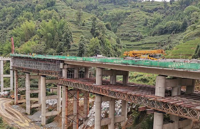 6月26日,在路橋五部負責施工的元綠高速七分部左幅阿德1號大橋施工現(xiàn)場,五聯(lián)現(xiàn)澆箱梁順利澆筑完成,標志著該項目橋梁主體工程進入了良好的沖刺階段。?元綠高速澤初立交區(qū)包含主線橋梁5座,橋梁全長左幅2034.66米、右幅2237.88米,設(shè)置匝道橋梁5座,橋梁全長1291.12米。其中,主線阿德1號大橋位于元陽至綠春高速公路澤初互通范圍內(nèi)的主線橋梁,為雙幅橋梁,左幅全長612.4米,起點樁號為ZK35…