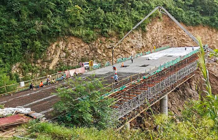 元綠二分部太平寨2號(hào)大橋現(xiàn)澆箱梁澆筑完成