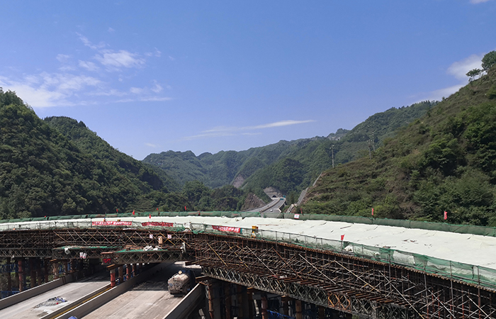 昭瀘高速頂拉互通第一聯(lián)現(xiàn)澆箱梁頂板澆筑完成