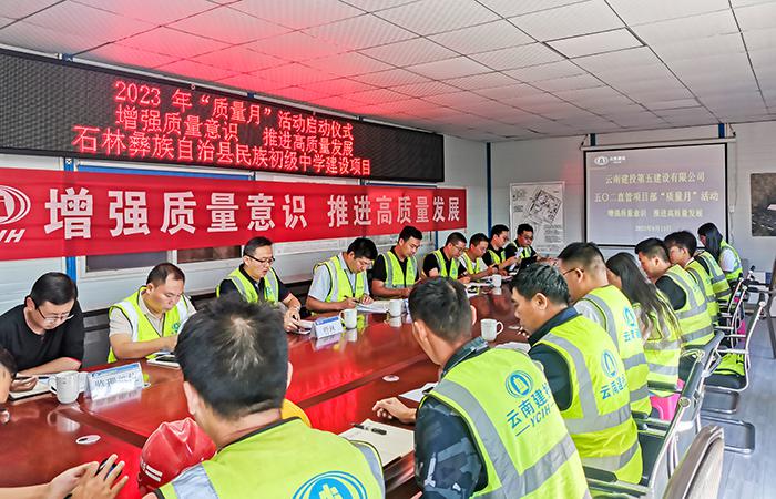 9月13日上午,五〇二直管項目部在石林彝族自治縣民族初級中學(xué)建設(shè)項目組織召開了以“增強(qiáng)質(zhì)量意識 推進(jìn)高質(zhì)量發(fā)展”為主題的2023年“質(zhì)量月”活動啟動會,直管部班子成員及各科室負(fù)責(zé)人、建設(shè)單位代表、監(jiān)理單位代表出席此次啟動大會。會議要求,一是要充分認(rèn)識“質(zhì)量月”活動的重要意義,充分運用責(zé)任體系建立、質(zhì)量風(fēng)險分析等質(zhì)量管理手段,全面構(gòu)建質(zhì)量管理體系和高效運行機(jī)制,切實提高在建項目人員質(zhì)量管理素質(zhì),提升…