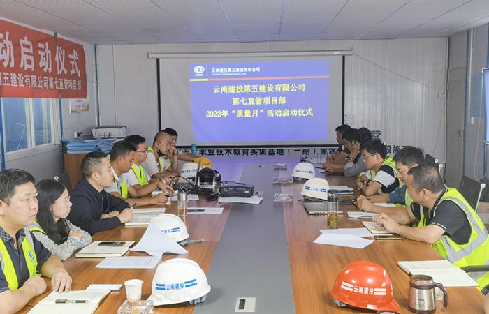 9月8日下午,第七直管項目部在云南師范大學關(guān)于職業(yè)技術(shù)教育實訓基地(一期)建設(shè)項目—二標段施工項目部會議室開展2022年“質(zhì)量月”活動啟動儀式。會議傳達學習了公司2022年“質(zhì)量月”活動精神,圍繞堅持質(zhì)量第一的價值向?qū)В渴鹆耸┕がF(xiàn)場的重點任務(wù)。直管部經(jīng)理宣布第七直管項目部2022年“質(zhì)量月”活動啟動并作要求。一是加強質(zhì)量管理,要求直管部人員在項目管控過程中要與時俱進,不斷學習,牢固樹立“質(zhì)量第一…
