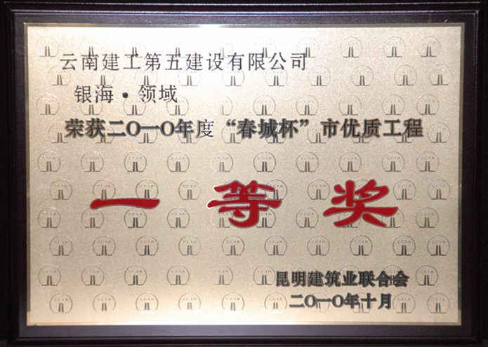 公司承建的銀?!ゎI(lǐng)域榮獲2010年度“春城杯”市優(yōu)質(zhì)工程一等獎(jiǎng)