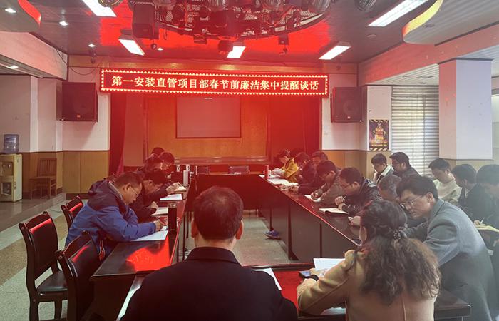2月4日下午,第一安裝直管項目部黨支部在直管部會議室開展春節(jié)前廉潔提醒談話。直管部領導班子、二線關鍵崗位人員、項目經(jīng)理共計20人參會。本次廉潔提醒重點學習了中央紀委國家監(jiān)委網(wǎng)站2月4日推送的《云南通報2起形式主義、官僚主義典型問題》。會議要求:直管部黨員領導干部要帶頭做好表率,堅守政治底線,以身作則,營造風清氣正、廉潔過年的良好氛圍;要著重加強思想建設,制度學習不能浮于表面、流于形式,要使學習成果…
