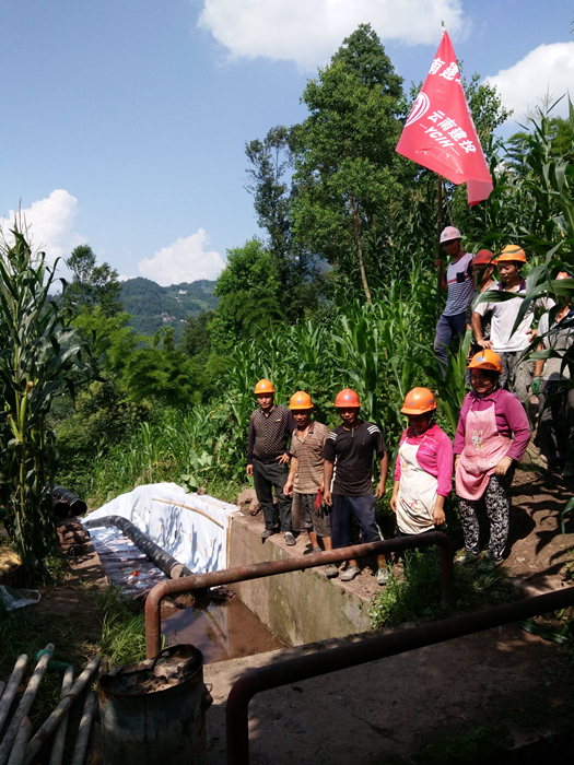 綏江項(xiàng)目部臨時(shí)組建了救援隊(duì)作為“先頭部隊(duì)”趕往受災(zāi)現(xiàn)場,可眼前的一幕讓他們驚呆了,小文橋下方排洪溝阻斷造成鄉(xiāng)鎮(zhèn)道路沖毀三分之一,幾十個(gè)村民正冒著暴雨將家中的物資向城里轉(zhuǎn)移;中城鎮(zhèn)鳳池17隊(duì)上方泄洪溝已斷裂垮塌,十幾個(gè)小伙子正在用鐵鍬冒雨將石塊堵住的泄洪溝挖開?!翱?!你們幾個(gè)去幫老鄉(xiāng)搬運(yùn)轉(zhuǎn)移,你們幾個(gè)跟我到下邊去!”“挖機(jī)呢?快把挖機(jī)師傅都叫來……”盡管暴雨重重地打在臉上和身上,卻沖刷不掉救援隊(duì)員鏗鏘有力的吶喊聲。
