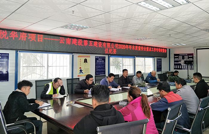 11月20日,公司副總經(jīng)理施文鐘在大理龍悅?cè)A府項(xiàng)目調(diào)研,召開專題會(huì)議,傳達(dá)集團(tuán)、公司年末質(zhì)量安全隱患排查及重點(diǎn)工作專項(xiàng)布置會(huì)議文件精神。