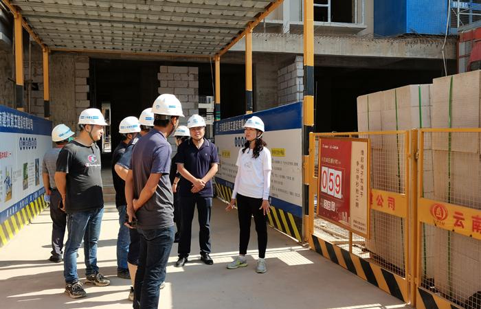 公司工會(huì)主席冷蕊帶隊(duì),按照《云南建投集團(tuán)企業(yè)形象識(shí)別系統(tǒng)管理手冊(cè)》統(tǒng)一規(guī)范,對(duì)元江高橋居住小區(qū)項(xiàng)目進(jìn)行 “樹形象”專項(xiàng)檢查,進(jìn)一步落實(shí)集團(tuán)“四保一控一樹”管理要求,直七、安二、 五〇五參建單位的項(xiàng)目經(jīng)理及相關(guān)人員陪同檢查。檢查組一行分別對(duì)B、C區(qū)幾幢在建樓房的重難點(diǎn)、工程施工進(jìn)展、安全質(zhì)量管控等情況進(jìn)行了了解,同時(shí)對(duì)施工現(xiàn)場(chǎng)的各種標(biāo)識(shí)標(biāo)牌的大小、位置、字體等情況進(jìn)行了詳細(xì)檢查,隨后召開專項(xiàng)檢查會(huì)。