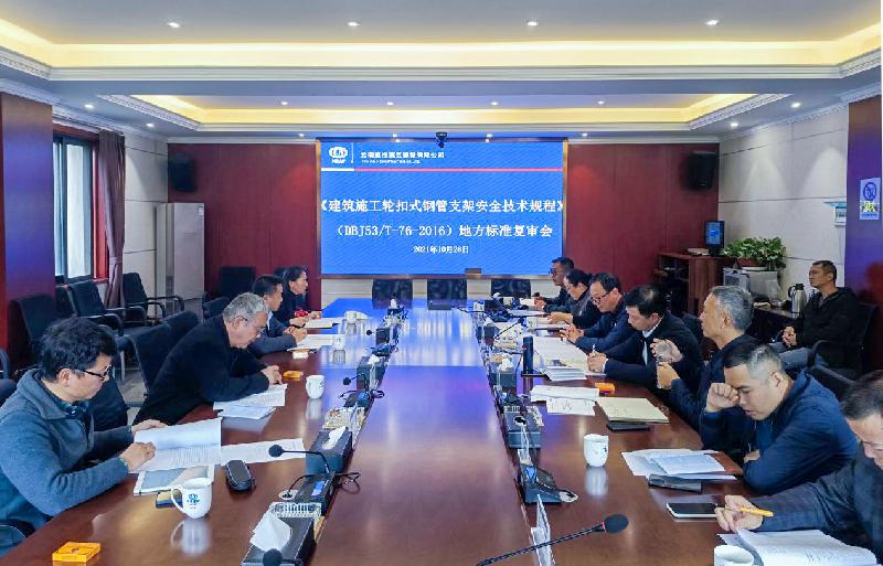 10月28日,公司技術(shù)中心組織召開了由公司與北京捷安建筑腳手架有限公司主編的《建筑施工輪扣式鋼管支架安全技術(shù)規(guī)程》DBJ53/T-76-2016地方標(biāo)準(zhǔn)復(fù)審會(huì)議。復(fù)審人員由復(fù)審專家、省住建廳標(biāo)準(zhǔn)管理部門人員、標(biāo)準(zhǔn)主要編制人員組成,公司董事長王楷銀出席會(huì)議。