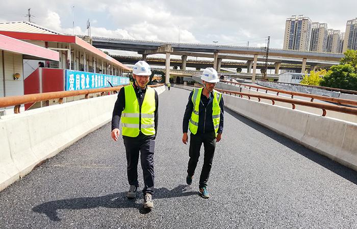 10月5日,公司黨委委員、副總經(jīng)理(主持工作)付雋蒼到路橋一部施工的菊華立交項目開展帶班檢查工作,查看了項目建設進展、安全生產(chǎn)工作落實情況,并對節(jié)假日期間堅守在一線崗位的管理人員表示慰問。