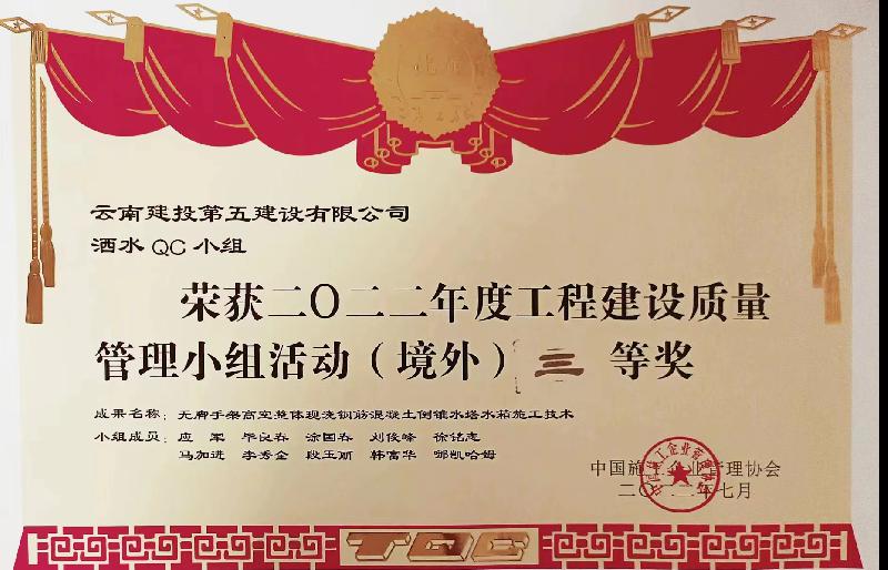 除此之外,中國(guó)建筑協(xié)會(huì)、中國(guó)施工企業(yè)協(xié)會(huì)、云南省建筑業(yè)協(xié)會(huì)、昆明市建筑業(yè)協(xié)會(huì)先后發(fā)布了2022年度優(yōu)秀QC成果獲獎(jiǎng)名單,公司20個(gè)QC成果均獲獎(jiǎng)。