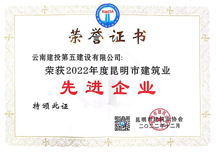 2022年12月8日,昆明市建筑業(yè)協(xié)會(huì)召開(kāi)第八屆理事會(huì)換屆選舉會(huì)員大會(huì),公司繼續(xù)當(dāng)選為昆明市建筑業(yè)協(xié)會(huì)副會(huì)長(zhǎng)單位,同時(shí)榮獲2022年度昆明市建筑業(yè)“先進(jìn)企業(yè)”“質(zhì)量管理優(yōu)秀企業(yè)”“質(zhì)量管理小組活動(dòng)優(yōu)秀企業(yè)”3項(xiàng)榮譽(yù)。