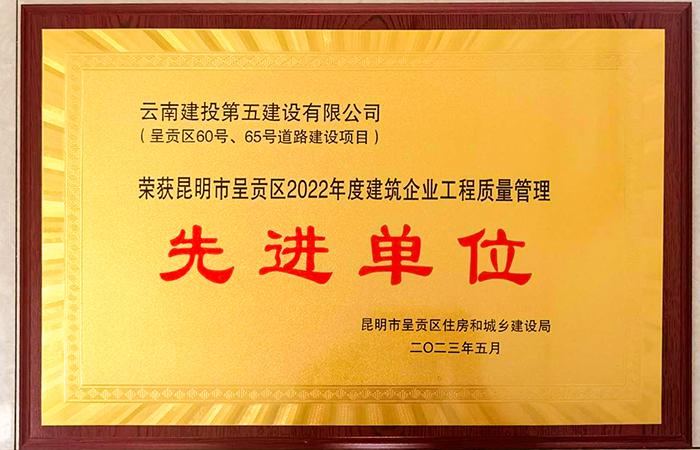近日,由第二直管項(xiàng)目部負(fù)責(zé)施工的呈貢區(qū)60號(hào)、65號(hào)道路建設(shè)項(xiàng)目榮獲呈貢區(qū)住房和城鄉(xiāng)建設(shè)局授予的昆明市呈貢區(qū)2022年度建筑企業(yè)工程質(zhì)量管理“先進(jìn)單位”榮譽(yù)稱號(hào)。