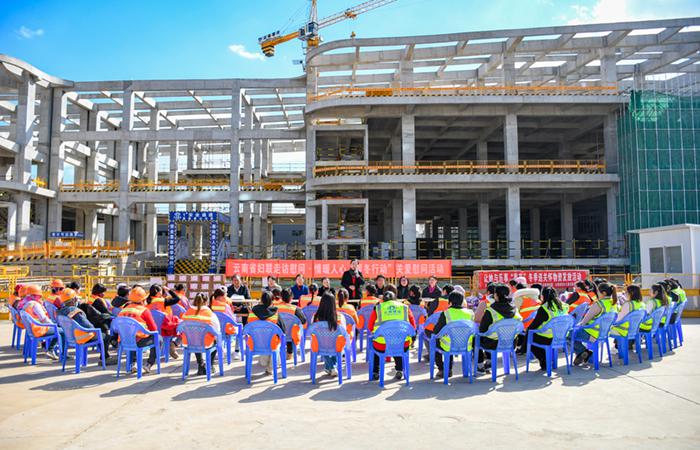 12月28日,云南省婦聯(lián)黨組書(shū)記、主席農(nóng)布央宗率隊(duì)到五公司負(fù)責(zé)施工的婦女兒童發(fā)展中心建設(shè)項(xiàng)目調(diào)研并開(kāi)展“情暖人心·暖冬行動(dòng)”慰問(wèn)活動(dòng),為現(xiàn)場(chǎng)60余名女性產(chǎn)業(yè)工人送去節(jié)日關(guān)懷與溫暖。云南省婦聯(lián)黨組成員、副主席陳芳主持活動(dòng)。