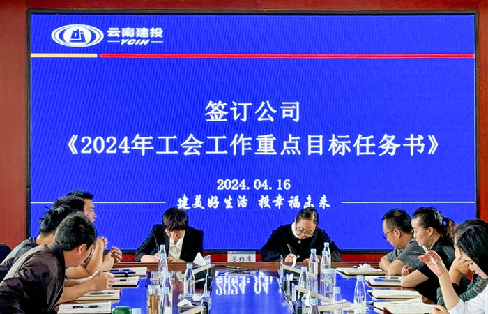 白建萍與基層工會代表簽訂公司《2024年工會工作重點目標(biāo)責(zé)任書》,并宣布云南建投第五建設(shè)有限公司群眾性安全生產(chǎn)監(jiān)督管理專項行動正式啟動。