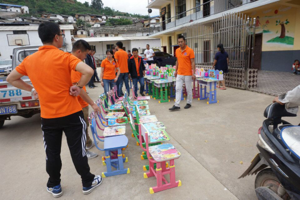 “我要米奇!我要熊二!我要……”在玉屏村幼兒園,孩子們看到五顏六色的小桌椅都禁不住七嘴八舌地開始挑選起自己喜愛的圖案。玉屏村小學里孩子們在校長組織下有序地從橙色衣服叔叔和阿姨手中的小蛋糕和學習用品,嘴里不停地說著“謝謝”,少先隊員們則不時地敬禮表示謝意。漢邑村小學孩子們用精彩的鼓樂表演來表達對彌玉高速象山試驗段送來學習用品的謝意。最后一站曲陀關小學,當“橙色小分隊”載著滿滿一車的盆景到達時,孩子們已經穿著整齊的服裝在列隊歡迎,讓人感動的是,車才停穩(wěn),高年級的同學們立即七手八腳的幫忙把盆栽搬下車,孩子們一聲聲的驚嘆聲以及臉上開心的神情讓大家感到無比的欣慰。