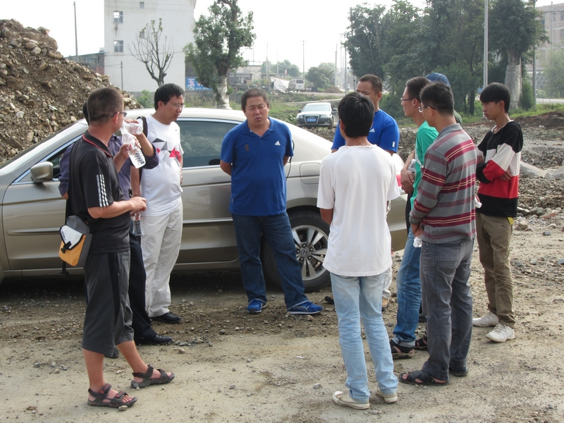 在南片區(qū)施工現(xiàn)場,王曉方一邊聽取1#地塊的工程樁施工進度匯報,一邊詢問混凝土的供應(yīng)狀況,并用手機為正在進行的打樁施工拍照。在北片區(qū)現(xiàn)場,王曉方仔細詢問了在場每一位工作人員的學(xué)歷、崗位和工作情況,了解到項目部大多為年輕人后,他指出,集團目前正走在大跨越、大發(fā)展階段,時不我待,大家要緊跟集團發(fā)展步伐,努力學(xué)習(xí),不斷提高自己,為實現(xiàn)集團大發(fā)展作出每個人應(yīng)有的努力。