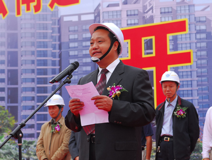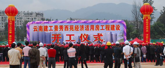 省建設(shè)廳副廳長陳錫誠,省國資委助理巡視員魏民,省市有關(guān)部門領(lǐng)導(dǎo),集團(tuán)總公司黨政領(lǐng)導(dǎo)納杰、寧升功、謝其華、劉勇、后永寧、邱錄軍出席開工儀式??偣靖鞑渴邑?fù)責(zé)人和所屬各單位黨政工領(lǐng)導(dǎo)前往祝賀。省國資委助理巡視員魏民、云南建工集團(tuán)董事長、黨委書記納杰和有關(guān)領(lǐng)導(dǎo)為工程開工儀式剪彩??偣究偨?jīng)理,省房地產(chǎn)公司總經(jīng)理李虎春,五公司董事長、黨委書記楊福和在儀式上講話,表示一定要以一流的質(zhì)量、一流的管理,開發(fā)建設(shè)好景秀西苑經(jīng)濟(jì)適用房項(xiàng)目,為集團(tuán)廣大職工解決好住房困難問題。