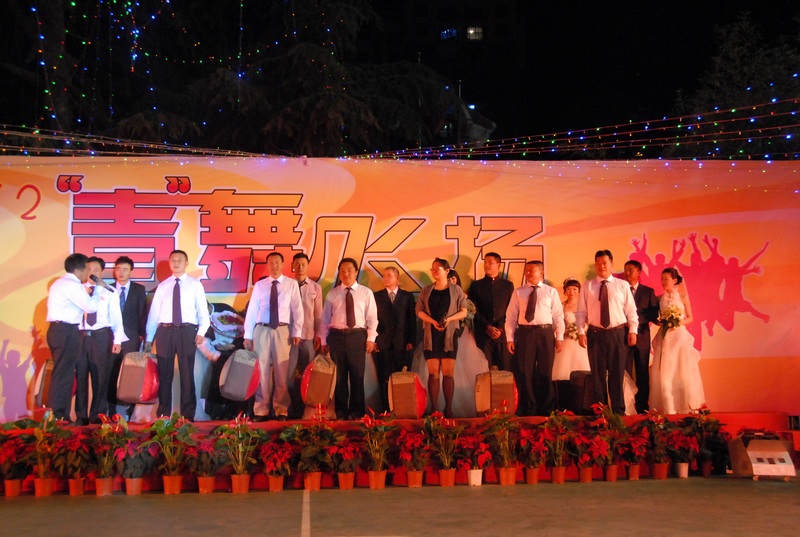 技術(shù)支持: 方森科技 5月3日晚,公司舉辦“跨越2012 ‘青’舞飛揚(yáng)”主題晚會(huì)慶祝五·四青年節(jié)的到來,晚會(huì)除了精彩紛呈的文藝匯演,還為來自基層的七對(duì)新人舉辦了一場(chǎng)隆重的集體婚禮。
