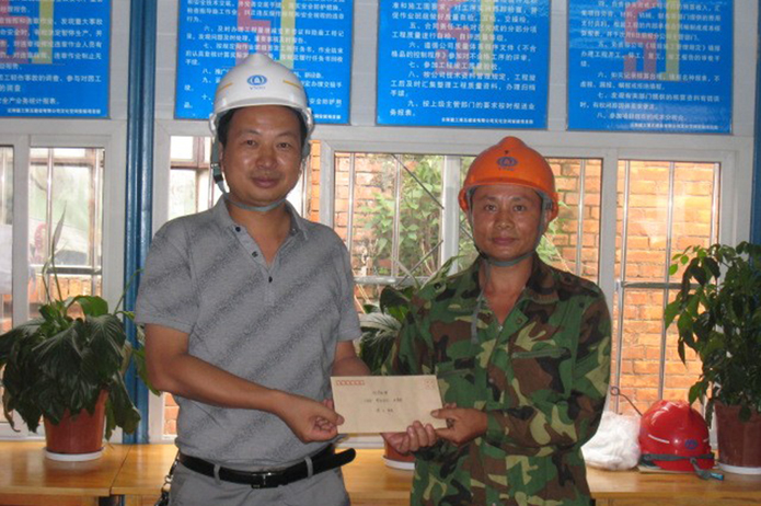 直管部經(jīng)理楊忠明、工會主席張興祥為獲獎班組頒獎