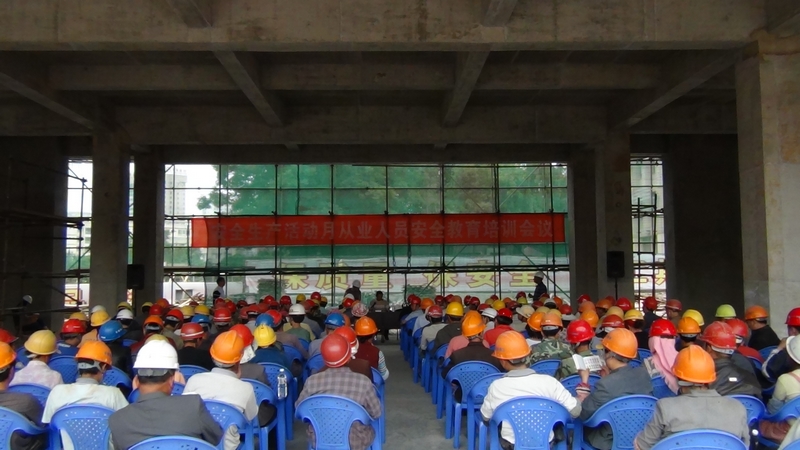 昆一中項(xiàng)目在6月12日召開安全生產(chǎn)月動員大會后,立馬展開了一系列“以項(xiàng)目為核心”的安全教育活動。針對建筑施工單位多數(shù)民工安全知識貧乏、自我保護(hù)意識淡薄等現(xiàn)狀,直管部質(zhì)安科聯(lián)合五華區(qū)建設(shè)局對昆一中項(xiàng)目現(xiàn)場所有管理人員和班組操作人員進(jìn)行了這次培訓(xùn)。