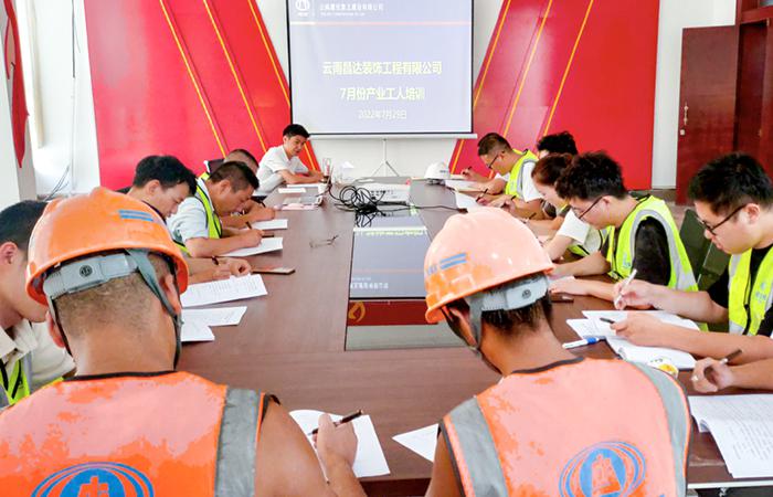 7月29日下午,昌達公司在云南革命軍事館建設項目開展7月產業(yè)工人培訓,項目管理人員及農民工代表共計18人參加培訓。會上,黨支部書記傳達了集團、公司年中工作會議精神,同時從工會的組織、權利和義務、基層工會組織、工會的經費和財產、法律責任等方面給大家詳細地介紹了《中華人民共和國工會法》,進一步加深職工對《工會法》主要精神和基本內容的了解。會后,支部書記查看了項目施工現(xiàn)場,并與職工談心談話,了解職工在生…