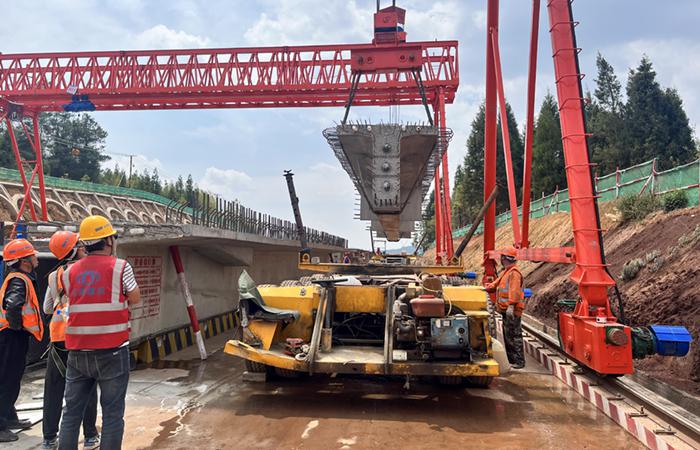 4月25日,由路橋五部負(fù)責(zé)施工的云蘭高速公路土建五分部龍?zhí)洞髽蜃蠓A(yù)制T梁順利架設(shè)完成。至此,龍?zhí)洞髽蛞褜?shí)現(xiàn)全幅貫通,進(jìn)一步打通了項(xiàng)目運(yùn)梁通道,為后續(xù)4座大橋的T梁架設(shè)施工奠定良好基礎(chǔ)。在T梁架設(shè)過程中,項(xiàng)目部多措并舉保障施工:一是安排專人負(fù)責(zé)T梁架設(shè),加強(qiáng)過程吊裝、運(yùn)輸、架設(shè)全過程監(jiān)管,做好成品保護(hù),嚴(yán)控過程質(zhì)量。二是嚴(yán)格遵循上級單位相關(guān)指導(dǎo)要求,按照集團(tuán)“四保一控一樹”項(xiàng)目管理要求做好細(xì)節(jié)管理…