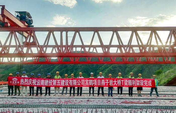 賓鶴高速項(xiàng)目八工區(qū)燕子巖大橋雙幅梁板架設(shè)完成