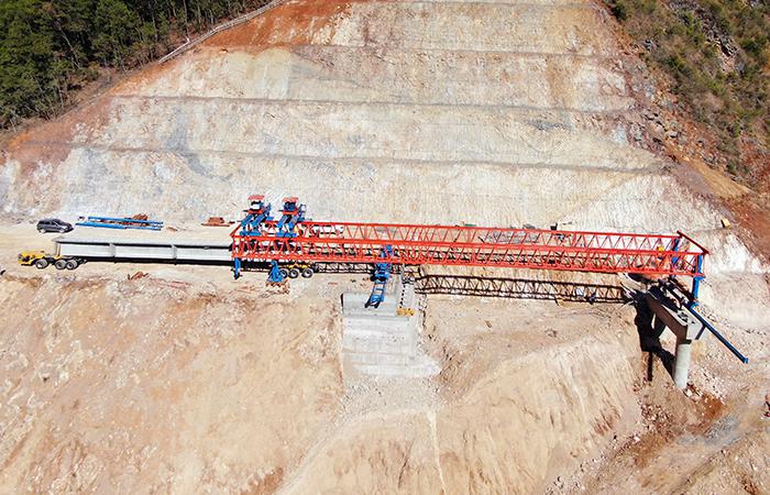 施鏈高速二分部白巖子1號(hào)大橋首梁成功架設(shè)