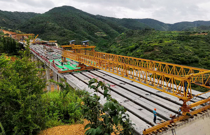 彌玉高速象山段玉屏村3號(hào)大橋右幅T梁順利架設(shè)完成